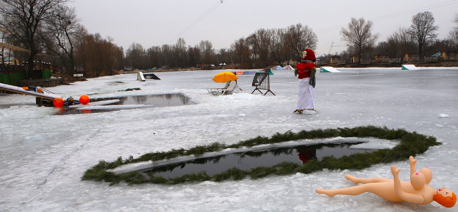 Масленица большой языческий праздник плодородия. Он определял на сколько продуктивным и плодотворным будет год. Блины- символы яркого солнца, родовитости земли и хорошего урожая, а сжигание чучела бабы – символизирует уход всего старого и приход молодого нового. Киевские моржи Пингвины лайфстайл сообщества FreeGen придумали креативную идею оплодотворить землю через прорубь.